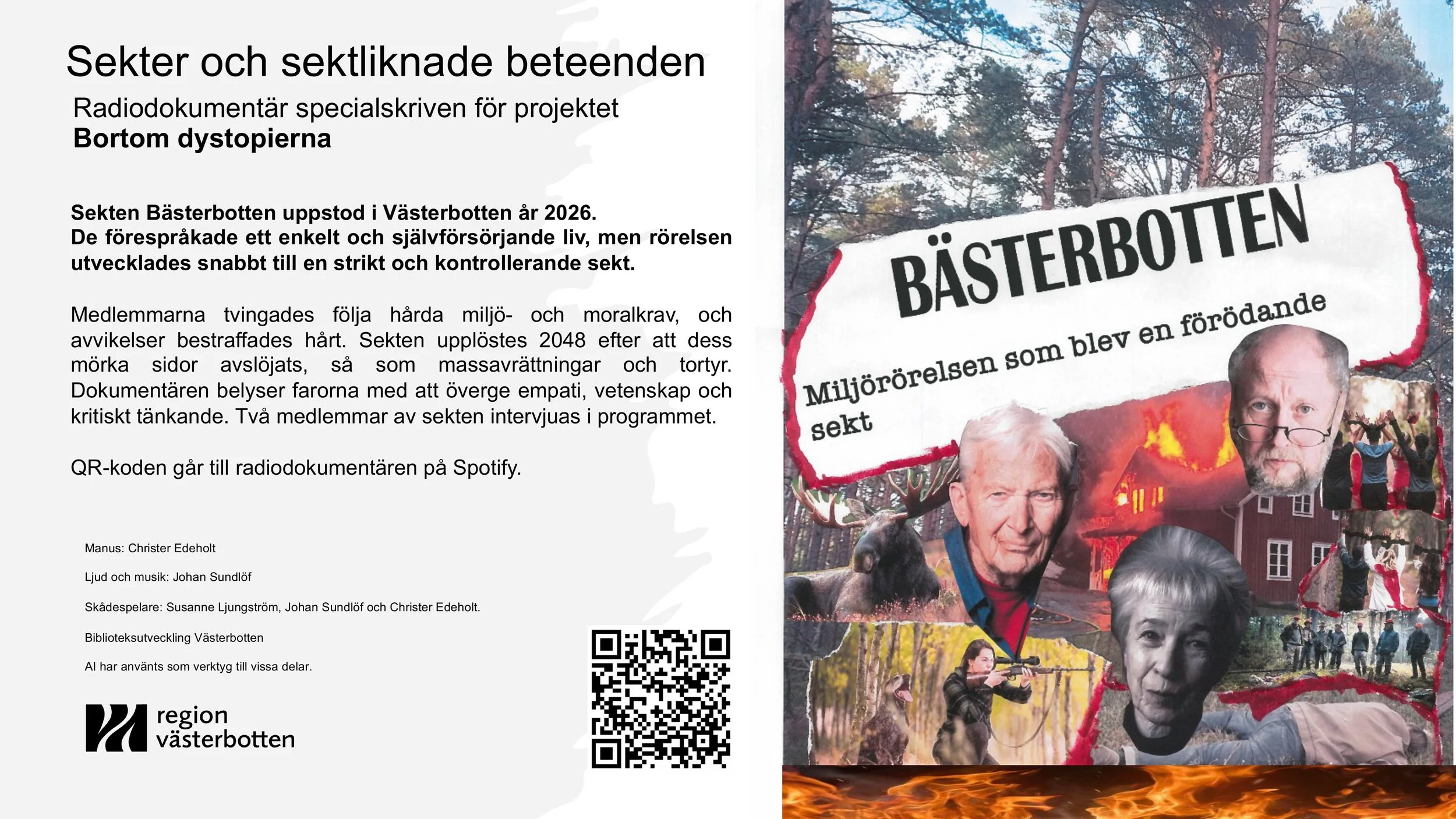 Berättarröst: Välkomna till programmet Sekter och sektliknande beteende, där vi dyker ner i en av de mest fascinerande och skrämmande berättelserna från Västerbotten, berättelsen om sekten ’Bästerbotten’. En sekt som föddes ur en längtan efter det förgångna, men som snart förvandlades till en mardröm.